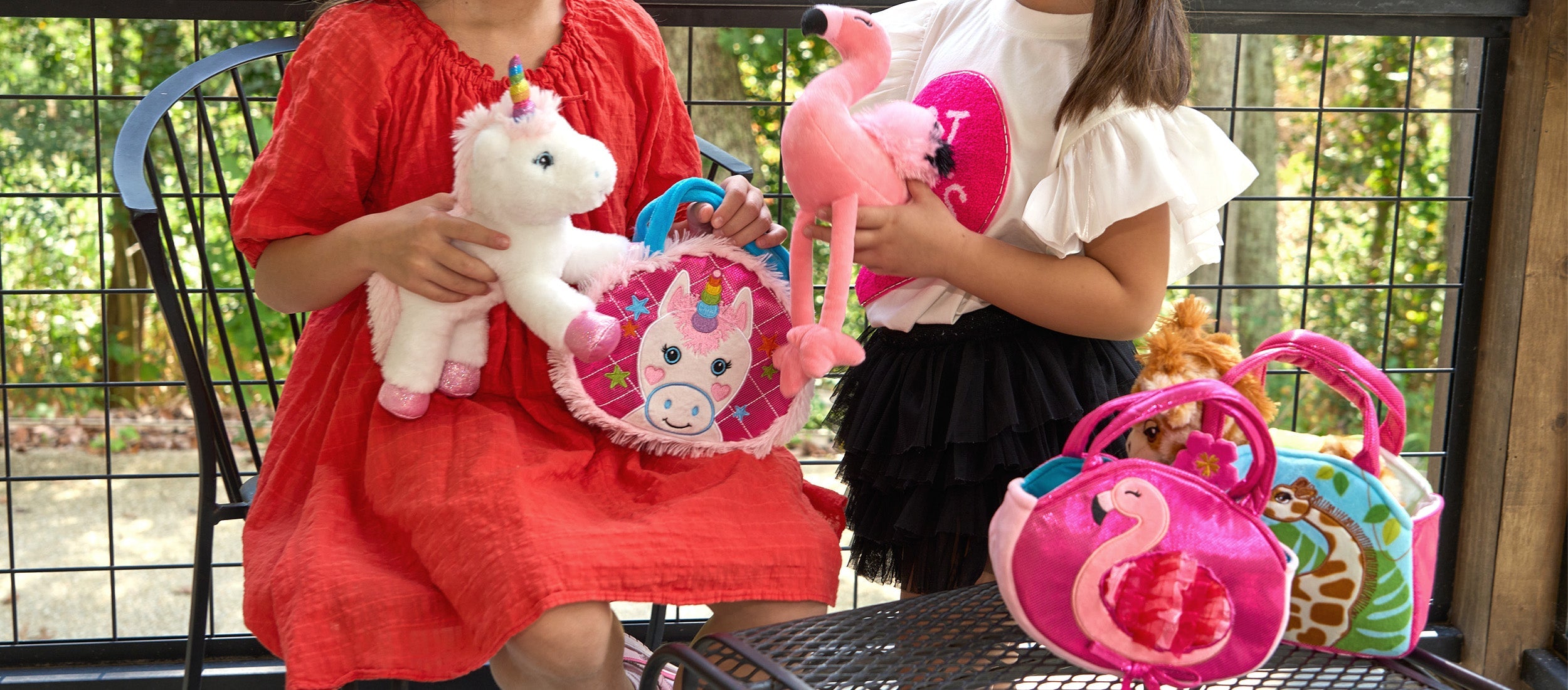 Perfectly plush purses with interactive textures and a matching plush animal inside!